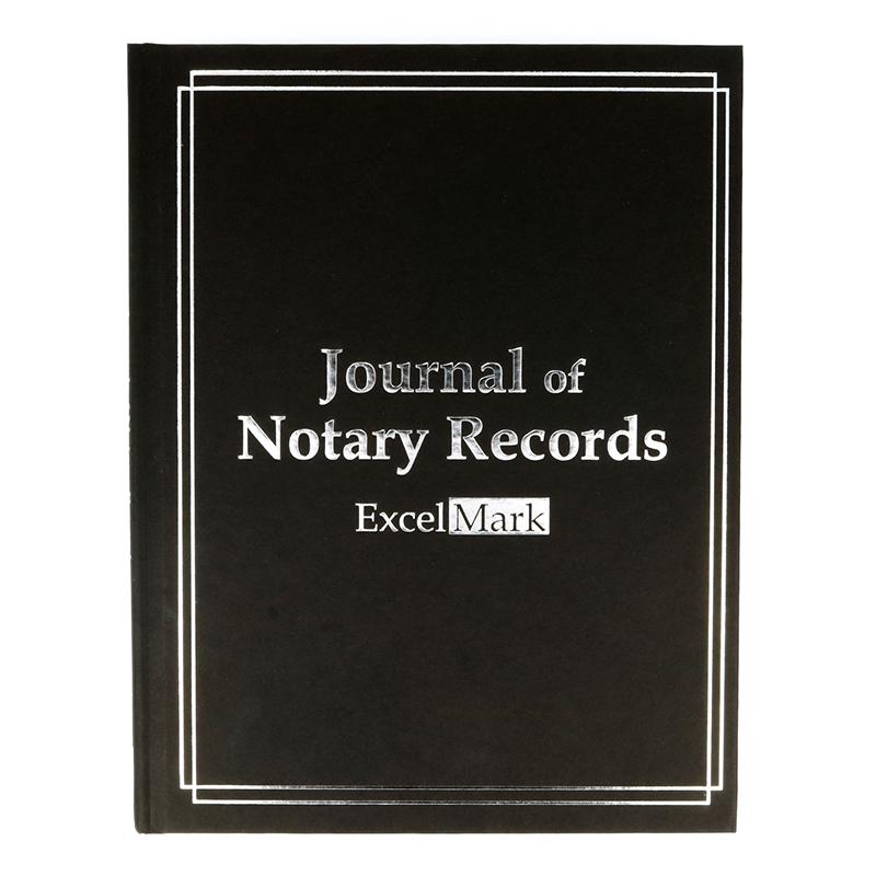 This premium well-bound notary journal features a matte black hardcover with silver foil lettering and accents.